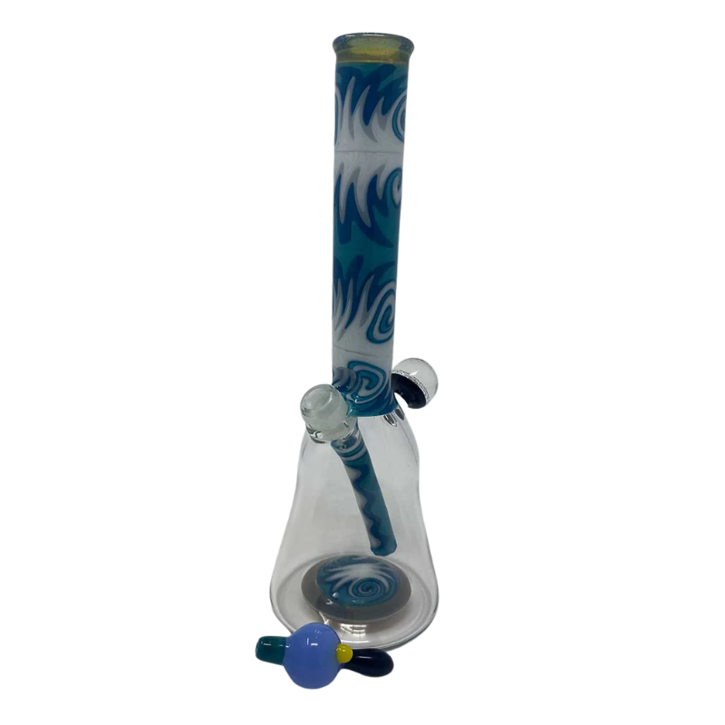 The Elevate Glass | Blue/White Wigwag w/ Matching Carb Cap is a premium, artisan‑crafted rig set offered through Diamond Glass LLC. Each piece is hand‑blown, showcasing a striking green and blue wigwag pattern that wraps the rig in dynamic linework and swirling color. The set includes a matching wigwag carb cap, completing the visual theme and ensuring a cohesive, elevated dabbing experience.