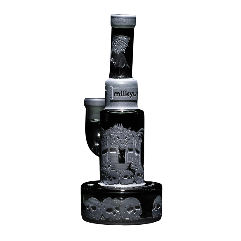 The Milkyway Glass Temple of the Dragon 7″ Dab Rig is an intricately crafted collectible that blends myth‑inspired artistry with high‑performance design. Measuring 7 inches (18 cm) tall and weighing 0.5 kg, this compact rig is built from 5 mm thick borosilicate glass, offering excellent durability and heat resistance for daily dabbing. Its Clear & Smoke base color and form are elevated by Milkyway’s advanced Micro‑SB (Micro Sandblast) deep‑etch technique, resulting in one of the brand’s most detailed and texturally complex pieces to date.